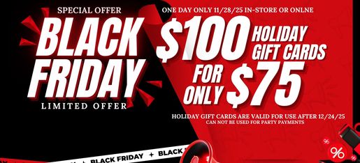 $100 HOLIDAY GIFT CARDS ONLY $75 each